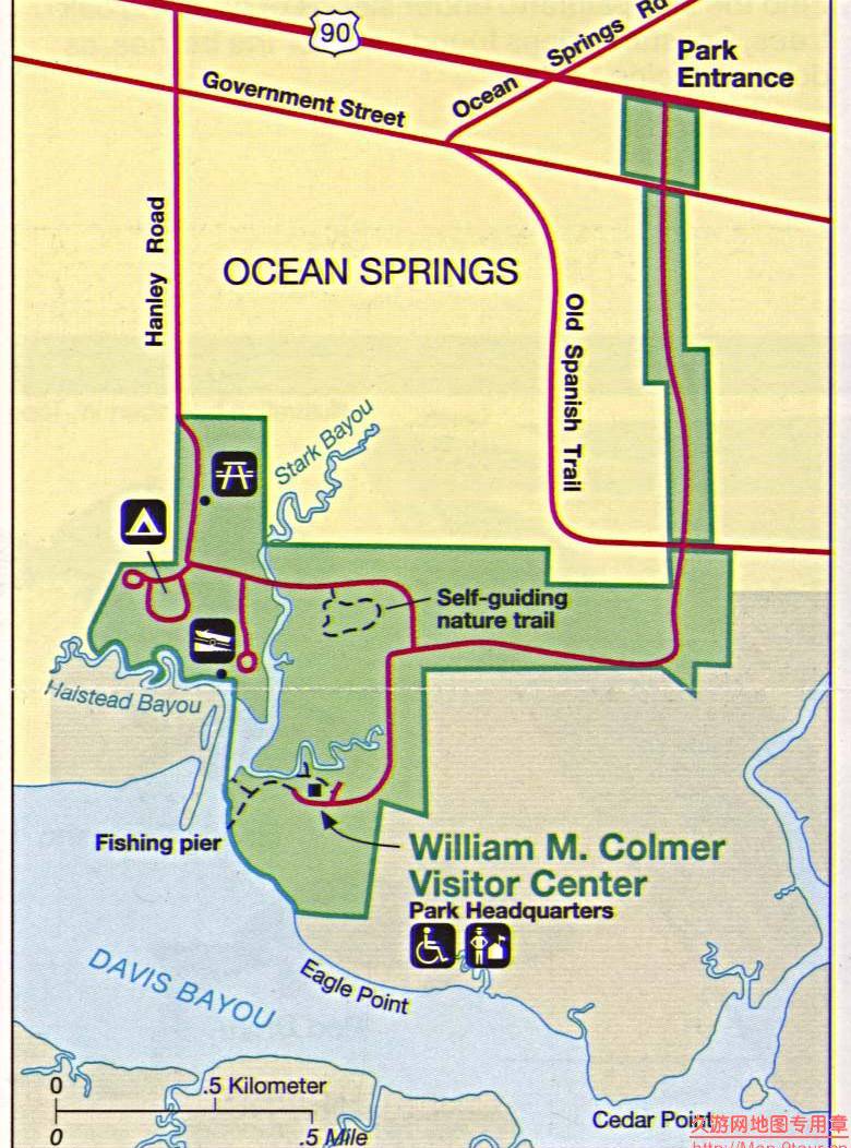 2.美国Missippi州Ocean Springs公园地图下载说明:鼠标移动到地图上方,右键->图片另存为->选择保存的路径;