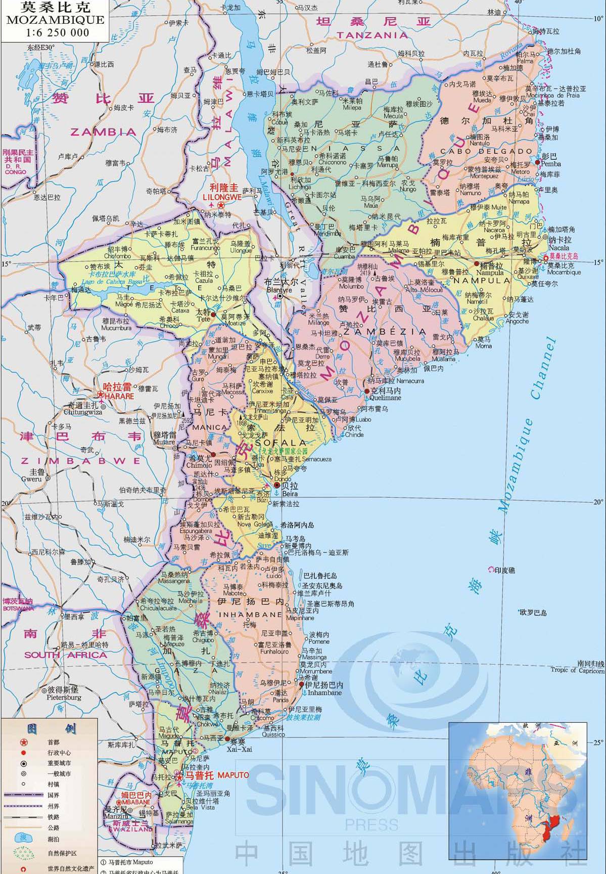 最新莫桑比克地图中文版