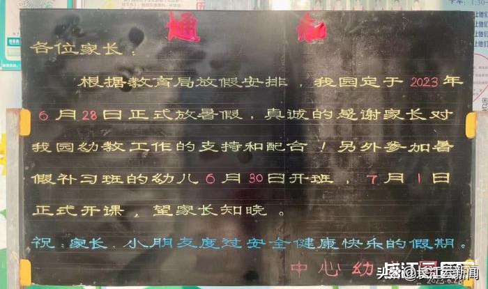 幼儿园保安手写通知堪比印刷体 放假通知走红!