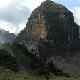 其尖顶四面各以约45度角斜落几百米后忽化为断崖绝壁,垂直插落深谷大壑底,远望犹如一座浮于