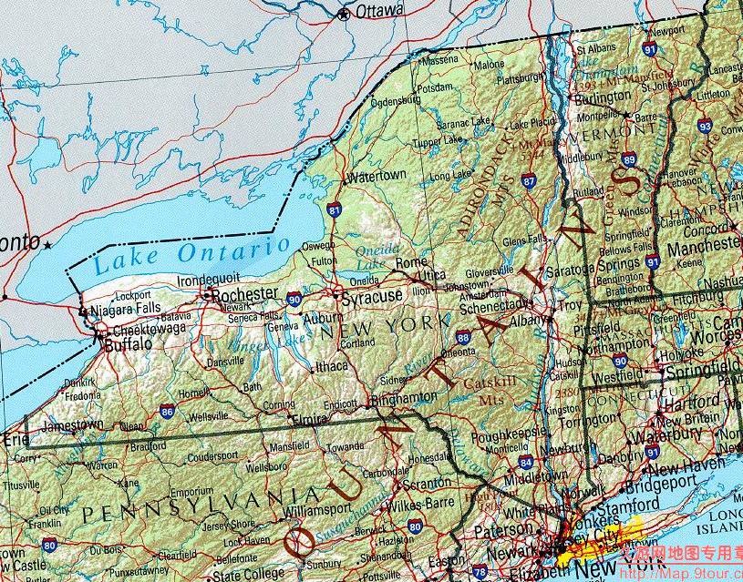 2.美国New York州地形交通图下载说明:鼠标移动到地图上方,右键->图片另存为->选择保存的路径;